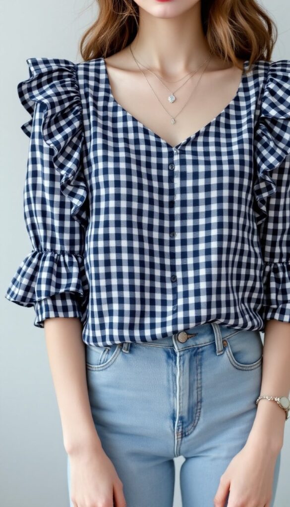 3. Gingham Check Ruffle Blouse